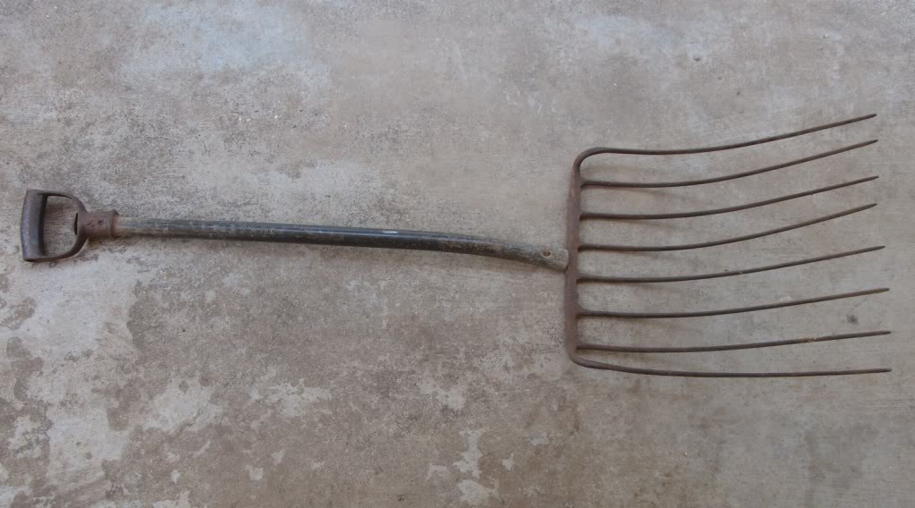Mid-project, a welcome interruption came in the form of a neighbor passing by. “That’s quite a job there,” came the voice from his (I might add) air-conditioned truck. “If it were me,” he continued, “I think I would use a pitchfork.” “Well…” I responded, “Sadly, my pitchfork broke a couple of hours ago!” “No problem; I’ll go grab mine for you!” he said, and off he went.